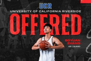 张博源收到加州大学河滨分校的offer,河滨分校可以说是一支全新的队伍,球队的原主帅,也是NCAA一级联赛唯一的一位亚裔主教练Mike Magpayo今年刚刚离开了球队去了福特汉姆大学执教,全新的教练加全新的球队存在很多未知性,当然我相信这只是一个开始,新赛季开打后Nike EYBL Scholastic联赛场边永远不会缺少名校NCAA大学教练的关注,只要张博源能有好的表现,好学校的offer一定少不了。